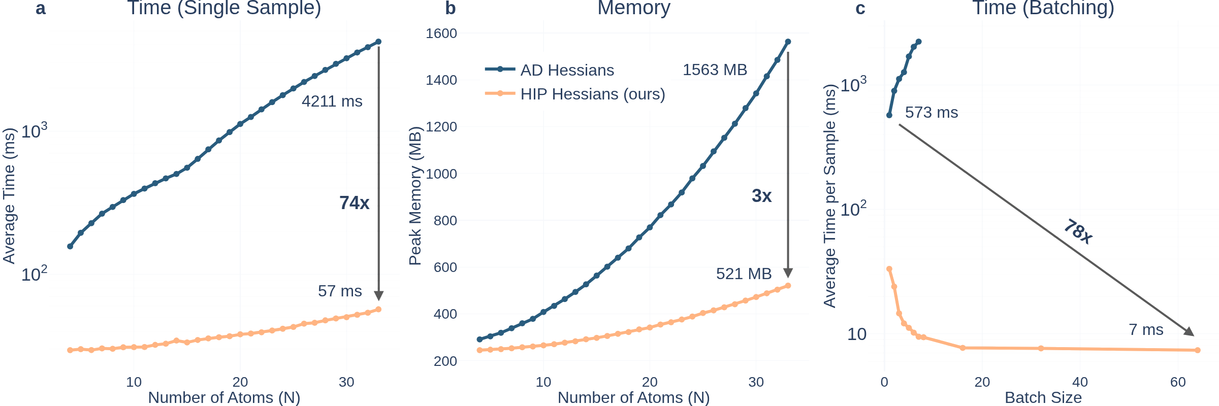 With HIP, we can now directly predict Hessians, orders of magnitude faster and more accurate than autodiff or finite difference. All we need is a small readout head on top of our favourite MLIPs.