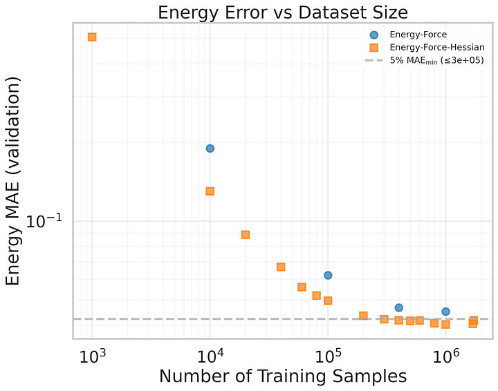 I find this result highly encouraging. With HIP we do not just get the Hessian “for free”, we even gain better predictions! This makes me go spend some CPU hours on collecting DFT Hessians, and turn all our MLIPs into HIPs.